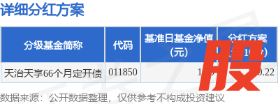 本站消息,8月27日发布《天治天享66个月定期开放债券型证券投资基金分红公告》。本次分红为2025年度的第1次分红。公告显示,本次分红的收益分配基准日为8月8日,详细分红方案如下:
