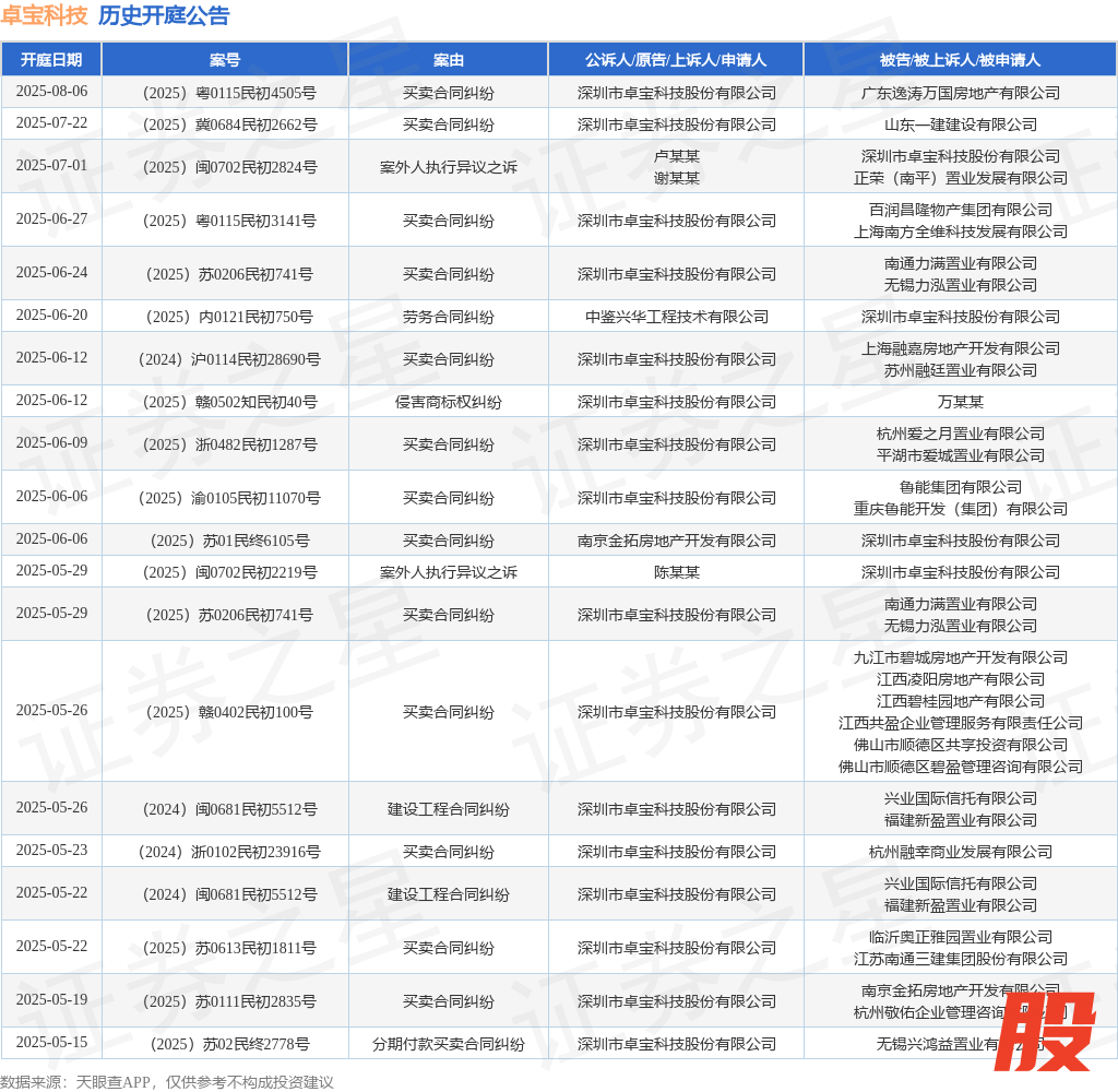 本站消息,根据天眼查APP显示,近日公布了一则深圳市卓宝科技股份有限公司作为被告/被上诉人的开庭公告富才配资富才配资,详细内容如下: